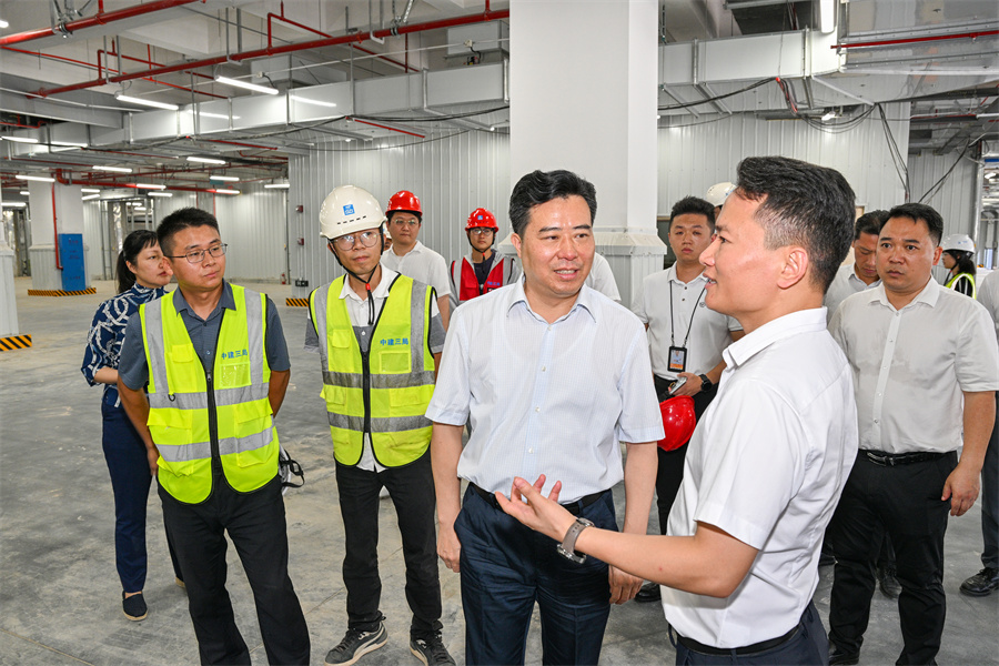 (8月8日上午,黎春秋還來到智慧冷鏈物流園現(xiàn)場調(diào)度第十一屆全球湘商大會籌備工作。以上照片均由懷化日報(bào)全媒體記者 潘雨 攝)